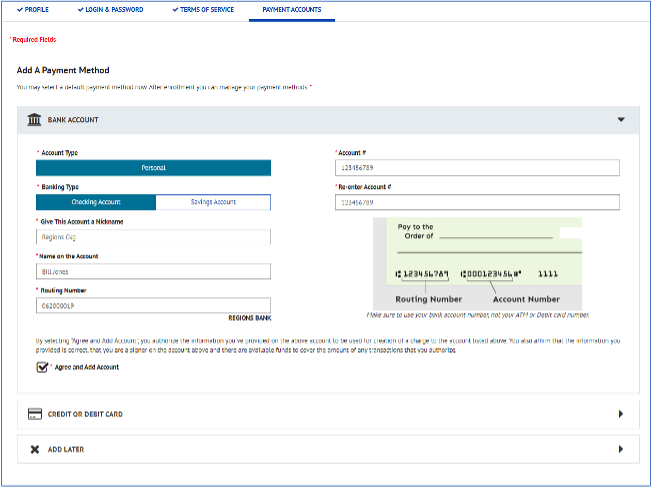 • Give the bank account a nickname (example: Regions Checking)