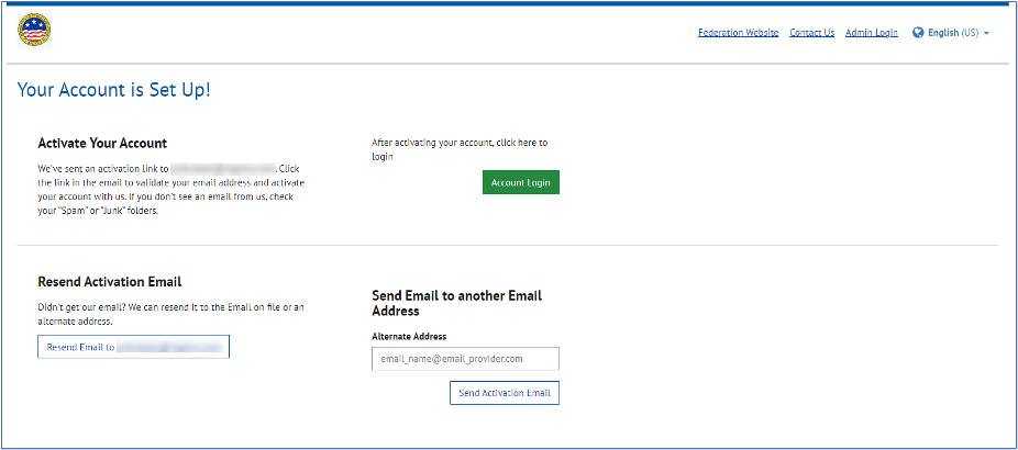 8. A new screen will open notifying you the Account is Set Up but your account will not be activated until you click the Activation link in an email you will receive.
